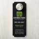 Boost your business visibility with this modern door hanger designed for tree and lawn care professionals. The prominent green tree emblem paired with bold white lettering makes your brand memorable. This design includes space for your business name, contact number, and website, serving as a portable advertisement. It's an excellent tool for reaching households directly, providing essential information at a glance. The sleek black background with a vibrant green accent ensures your message is seen and conveys a polished, reliable image for your lawn care services.