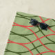 This beach towel has a Boho design of green and orange waves on a field of light green.