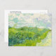 A fine art Postcard with the post-impressionism painting, Green Wheat Fields, Auvers (1890), by the Dutch artist Vincent van Gogh (1853-1890). Beautiful green fields with swirled clouds and a blue sky.