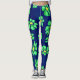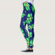 Green Whimsical Flowers Daisies on Blue Background Leggings