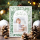 Whimsical joyful holiday card features hand drawn festive Christmas celebration illustrations in watercolor sage green color, with personalized family photo, modern and fun.
