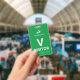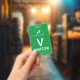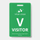 Vertical visitor badge with a simple design in white against a green background. A large white V makes it easy to quickly recognise the visitor as such. Personalise with your business logo.