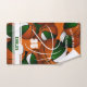 This hand towel for a basketball player features easy-to-personalise athlete name and jersey number plus team name overlying the background image of a bunch of randomly arranged basketballs - each of the basketballs has two recolored panels--one green and one white - the minimalist image of a basketball (as represented by its seams only in white) is centred on the towel - the team mascot name can be personalised on white horizontal varsity stripes at the bottom edge of the towel - background colour is customisable basketball-orange - by katz_d_zynes