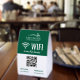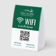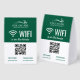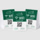 Let your patrons, customers or clients easily access your wifi with these editable tabletop tent signs in green and white. Personalize with your logo, your QR code, and the network and password.