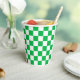 Green White Chequered Check Pattern Paper Cups
