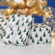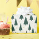 This is a roll of holiday wrapping paper with a cute and modern pattern featuring Christmas trees and small yellow gold stars.