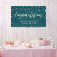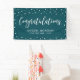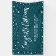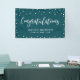This event banner design features simple white confetti and "Congratulations" typography on a blue green background. This congratulations banner is the perfect decoration for a modern chic party. You can customise the name and text at the bottom of the banner for your events. (Birthday, Retirement, Anniversary, Graduations or any other celebrations)