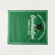 This modern green and white custom graduation party tapestry features classy typography of your high school or college name for the class of 2025. Customise this photo booth backdrop with your graduating year under the chic handwritten script and black grad cap for great personalised graduate decor.