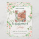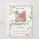 A sophisticated green and white engagement invitation card featuring elegant typography, framed by a delicate border of pink roses. The design exudes romance and charm, perfect for a timeless and graceful celebration.