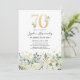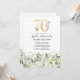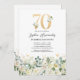 Set the tone for a memorable milestone celebration with our 70th birthday party invitations. Featuring rustic green foliage, elegant white watercolor florals, and gold accents. Paired with a chic seventy birthday celebration text template that you can personalise, these invitations are a perfect blend of elegance and charm. Get ready for the ultimate 70th birthday bash!