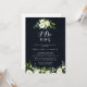 This green white floral blue "I Do" BBQ engagement party invitation is perfect for a rustic engagement party, rehearsal dinner, couples shower, after party or any wedding event in a dark blue background. The design features elegant watercolor white peonies with green foliage.