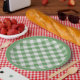 The simple geometric design in the background is a green and white, printed gingham checks pattern with a green ring around the rim. A great idea for your next party, no matter the event. This design is suitable for all occasions or events including: birthday party, baby shower, graduation, congratulations, and more.