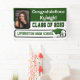 This banner can be fully personalised with the student's photo, name, message, class year, and town & school name. It includes matching cap and diploma artwork, which may also be customised. If you envision a different design, please contact us and we would be happy to customise it for you!