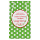 Cute bright green, white and red polka dots circle pattern baking gift bag, perfect for Christmas cookie exchange parties or for selling your homemade products at farmer's market's and craft fairs. Use these bag to present your Christmas gifts or for children's favours to family and friends. Currently reads Made with love from the kitchen of Gemma Robertson Gingerbread Cookies. Fully customisable to personalise with your own name, and product details. Designed by Sarah Trett.