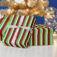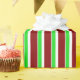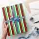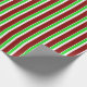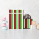 This wrapping paper design features a Christmas inspired green, white, and red coloured stripes pattern. Wrapping paper like this might be fun to use when preparing presents or gifts being given to celebrate a birthday, a wedding, an anniversary, or some other event.