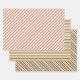 These festive wrapping paper sheets designs feature Christmas-inspired striped patterns having colours like green, white, and red. Festive wrapping paper sheets like these might be fun to use when wrapping gifts or presents being given in celebration of Christmas.
