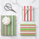 Green, White, Red Coloured Christmas Themed Lines Wrapping Paper Sheet