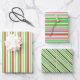 Green, White, Red Coloured Christmas-Themed Lines Wrapping Paper Sheet
