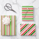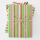 Green, White, Red Coloured Christmas Themed Lines Wrapping Paper Sheet