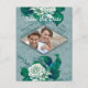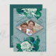 Green/ White Rose Flowers on Green pattern paper Announcement Postcard
