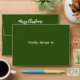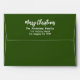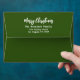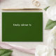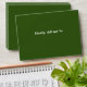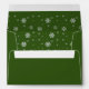 Modern simple elegant Christmas design with white winter snowflake pattern on a forest green background and family name with return address to personalise.