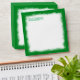 Bright green square envelope conveniently has your company address and green logo already printed. Budget company envelopes are easy to personalise with other sizes available. Pre-printed address, business envelopes are versatile for company holiday cards, collateral, or promotional materials. Decorative white snowflake border is a festive addition to your hunter green, winter green, forest green company holiday Christmas cards. Attractive with many business logo colours, including green company logos or yellow company logos.