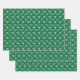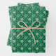 Green and white snowflakes adorn these holiday Christmas wrapping paper sheets.