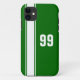 Simple and classic Green & White Striped Sports Team Jersey Numbered iPhone Case. Great for dads, brothers, grads and friends. Customise with a name and/or jersey number.