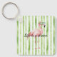 Green White Stripes Pink Flamingo Key Ring