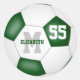 These fun soccer 3 inch round stickers for a girl or boy feature a simple soccer ball graphic with green and white panels - customise with the athlete's name, monogram and jersey number - by katz_d_zynes