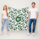 This team colours soccer themed fleece blanket features a pattern of varied size soccer balls turned every which way on a customisable white background - the soccer balls' typically black panels have been recolored green - customise with soccer player's name and monogram or jersey number - by katz_d_zynes