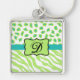 Green White Zebra Leopard Skin Monogram Initial Key Ring
