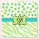 Green White Zebra Leopard Skin Monogram Initial Square Paper Coaster