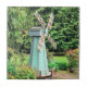 A very cute green windmill as a decoration in a garden. Photo taken April 2019 in Woodburn, Oregon.