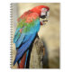 Portrait green-winged Macaw (Ara chloropterus) on perch and eating fruit