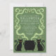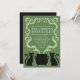 Scare up a good time with this witchy Halloween invite. This item features two black cats, a cauldron, and stars against a green background. It's the perfect way to invite your friends to a spooky and sweet Halloween party.