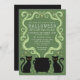 Green Witchy Black Cat Cauldron Halloween Party Invitation