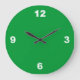 A simple wall clock with a green background and large white numbers marking the 12, 6, 9 and 3. For any green decor kitchen or room. Click Customise It to add your custom text, change background colours and more.