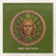 A Green Woman carved in wood with paint applied to the oak leaves and hair. Customise by adding your own text.