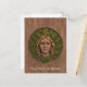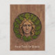 A Green Woman carved in wood with paint applied to the oak leaves and hair. Customise by adding your own text.