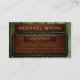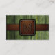 Green Wood Brown Leather Look Monogram Business Card