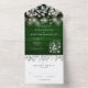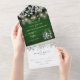 Green Wood Floral String Lights Monogram Wedding All In One Invitation