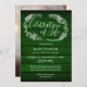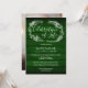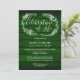 An elegant rustic celebration of life remembrance invitation featuring a hand-drawn foliage garland on a green wood panels background with a special photo on the reverse. Designed by Thisisnotme©