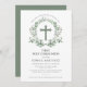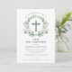 Elegant choice for a girl's First Communion invitation. A sage green botanical eucalyptus wreath frames a simple cross at the top. All of the text can be edited.
