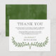 Elegant thank you card for a memorial service with a green wreath. Add your own message to the guests attending the occasion. The back features a matching watercolor background.