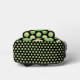 Mod style green and yellow dots of varying sizes on a black background. Name in a monogram circle on the front, in script font. Customise by adding your own name.