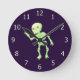 Green Yellow Glow Cute Skeleton Waving Art Round Clock