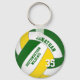 This personalized boys' volleyball keychain with team name features a green, yellow and white volleyball upon which you can customize the player's name and jersey number plus school team and mascot name - by katz_d_zynes