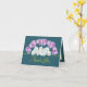 Beautiful garland featuring pink and purple crocus flowers and white roses against an aqua green colour background. The yellow colour greeting text uses an attractive script typography font. The flowers cover the front of this card which can be used as a thank you card, a birthday card, or any other card of your choice. Personalise it with your text and/or pictures to make it one-of-a-kind!