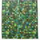 This shower curtain features a square tiled mosaic pattern design in shades of cool green and yellow.